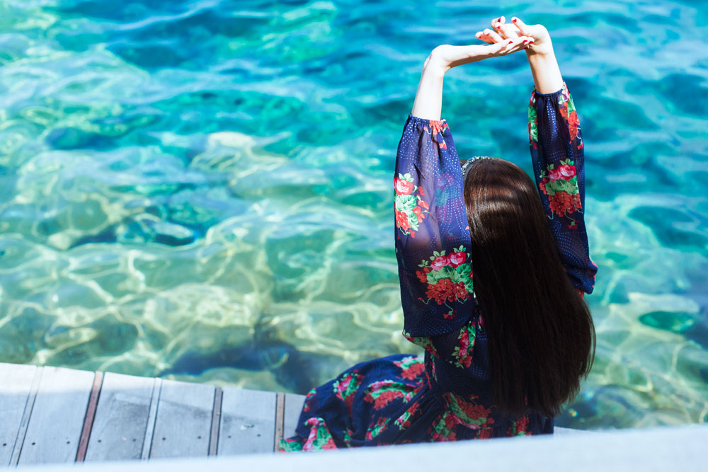 Dopo il pranzo mi sono trattenuta lì tutto il pomeriggio. Yana Khankhatova la mia fotografa ha preso il sole e fatto il bagno io invece sono rimasta al ristorante ed ho lavoricchiato al computer.